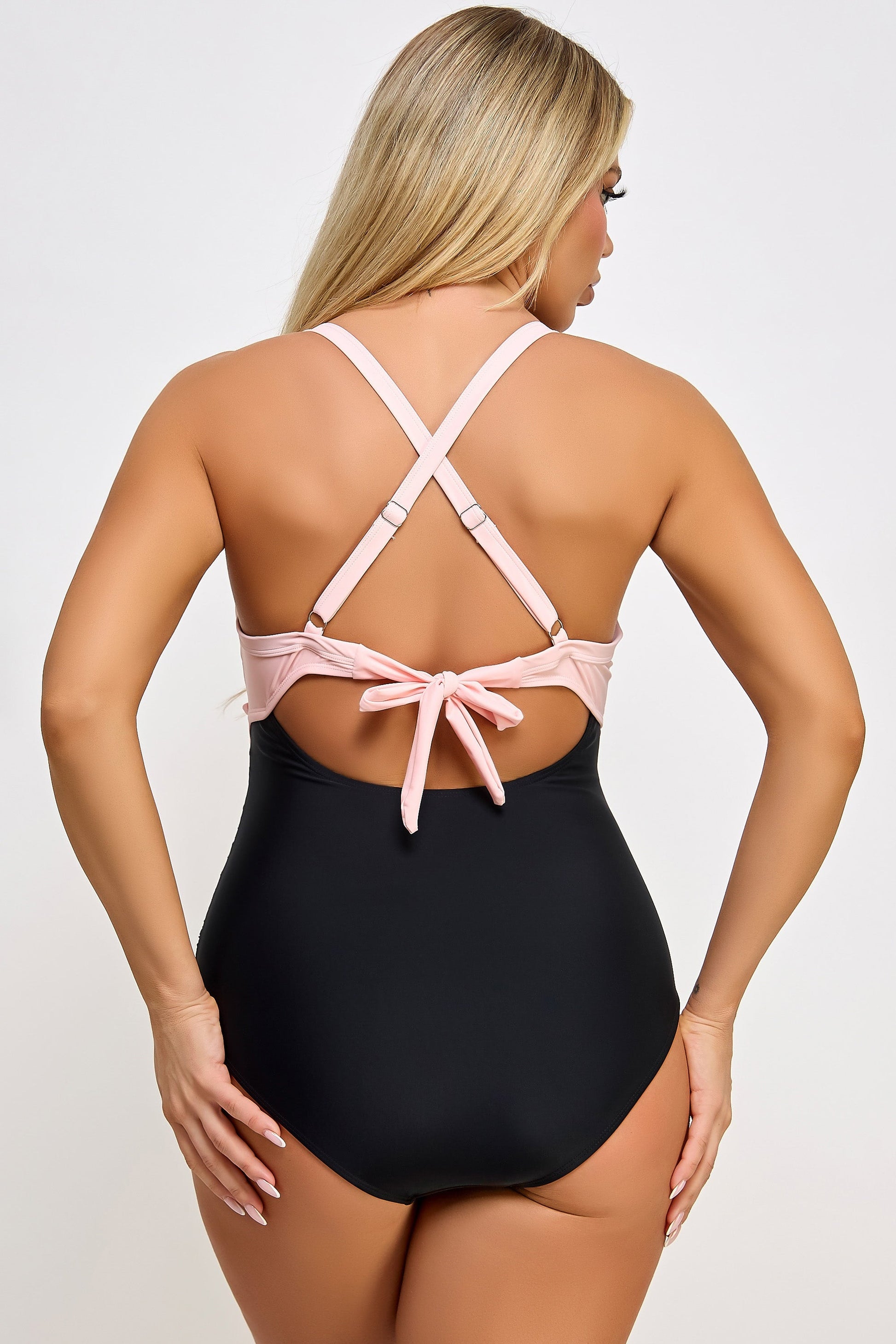 Make a bold statement with Our Marilyn Swimsuit, designed to offer both style and functionality. Featuring a trendy wrap top and strategic design elements that hug the curves in the right places. This swimsuit is perfect for those looking to highlight their curves while enjoying a comfortable fit. Tummy control waist Wrap sweetheart neckline Adjustable straps Back tie closure Cut-out empire waist Medium coverage bottom